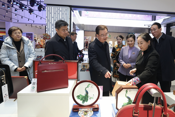王宁一直关注、多次调研彝绣产业。楚雄州彝绣产值2025年达11.5亿元,经营主体从2022年的530余户增加至2230余户,带动6万绣娘就地就近就业,每年人均增收近4000元,多的可达2万至4万元。王宁这次来到楚雄彝绣数字文化产业园,听介绍、看产品、观展演,与绣娘、企业负责人、创意设计师深入交流,充分肯定园区建立绣娘库、产品库、设计师开放平台等,为绣娘、企业、客户牵线搭桥,推动彝绣标准化、市场化、品牌化的做法。他强调,要围绕市场需求、产品定价、绣娘增收等核心问题,来思考谋划彝绣发展的方向、路径,以提升产品档次满足多元消费为着力点,以促进绣娘增收为最终落脚点,让千年彝绣走向全国全世界,让绣娘的一针一线卖出好价格。
