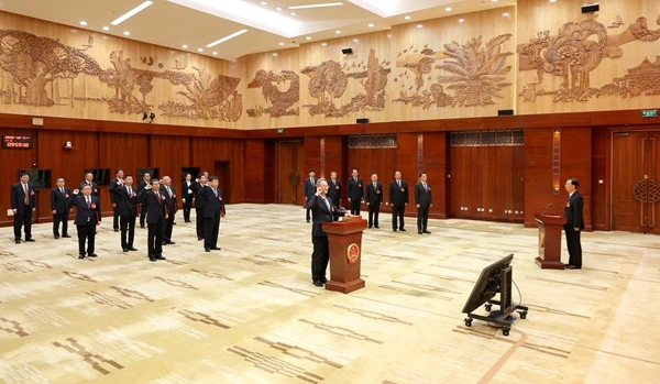 大会主席团主持举行宪法宣誓仪式。