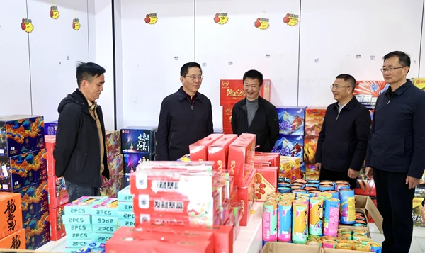 2月21日,王予波在玉龙县永安烟花爆竹经营部检查安全措施落实情况。