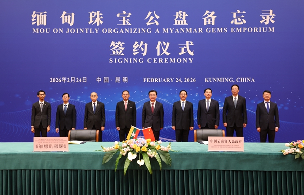 省政府与缅甸自然资源与环境保护部签署关于在瑞丽姐告共同举办缅甸珠宝公盘的备忘录。