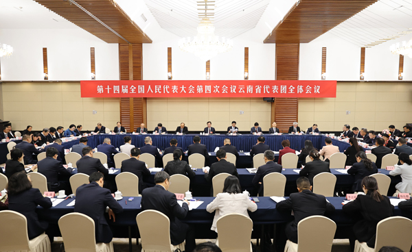 3月6日,出席十四届全国人大四次会议的云南省代表团举行全体会议和小组会议,审议政府工作报告、审查“十五五”规划纲要草案。
