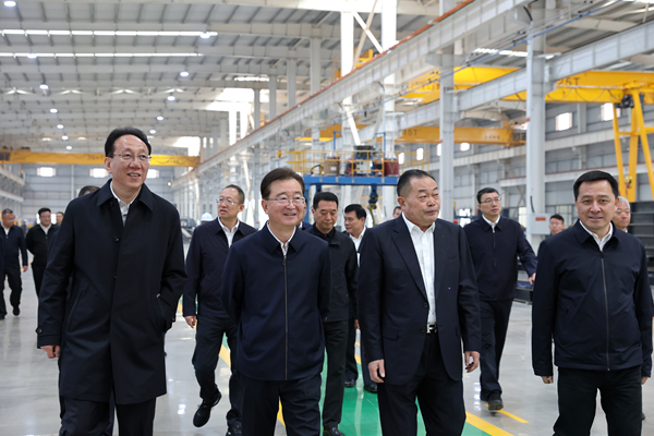 3月25日,王宁在嵩明县龙马控股集团制造基地,调研高端机床、风电装备等生产线建设情况。