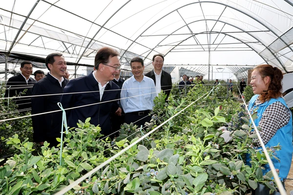 在汤丹镇中毓现代农业种植公司基地,王宁调研创新治理尾矿库情况,肯定当地通过发展基质栽培蓝莓,实现生态修复、产业转型、富民增收的成功实践,强调要支持企业扩大种植规模,用好干热河谷气候优势,因地制宜推进光伏提水,发展现代农业,以好资源换出好产业。