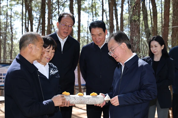 3月31日,王宁深入永胜县长坪山万亩林下经济产业园,详细了解林下种植羊肚菌、金耳及促农增收情况。
